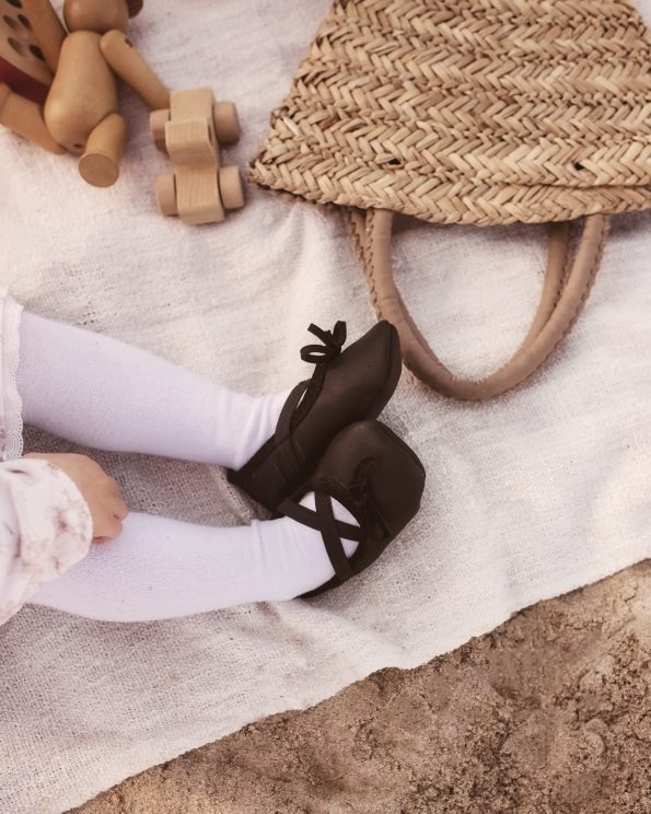 Små tår, tidlös elegans! Eleganta och praktiska babyballerinaskor med en mjuk lädersula, en söt rosett och elastiska remmar för en säker och enkel passform. Dessa skor ger en touch av elegans till din lilla älsklings garderob.