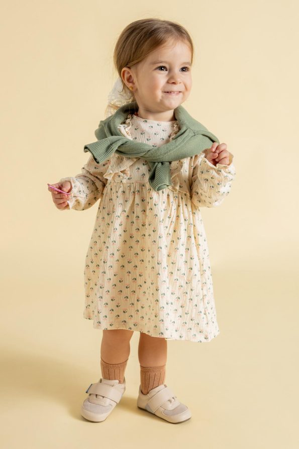 Dessa barfotaskor i BioVegan™-läder låter små fötter glänsa samtidigt som de får full rörelsefrihet. Den elastiska remmen gör dem enkla att ta på och håller skon på plats hela dagen. Med sin flexibla sula och mjuka passform stödjer de barnets naturliga steg – perfekta för både fest och vardag.