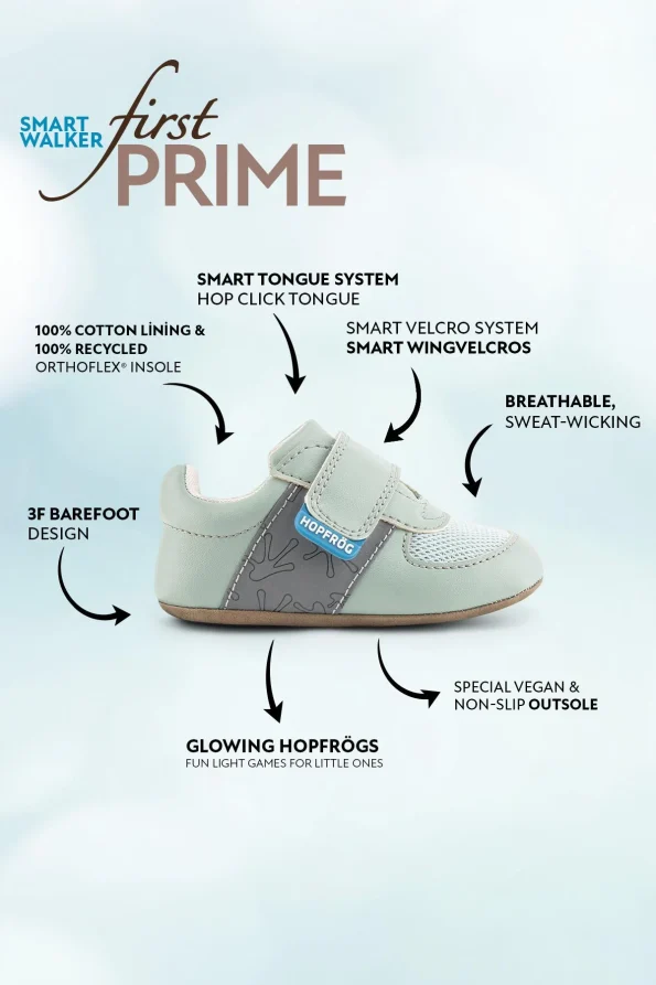 First Prime är skapad för barnets allra första steg – mjuk, flexibel och stödjande för en naturlig fotutveckling.