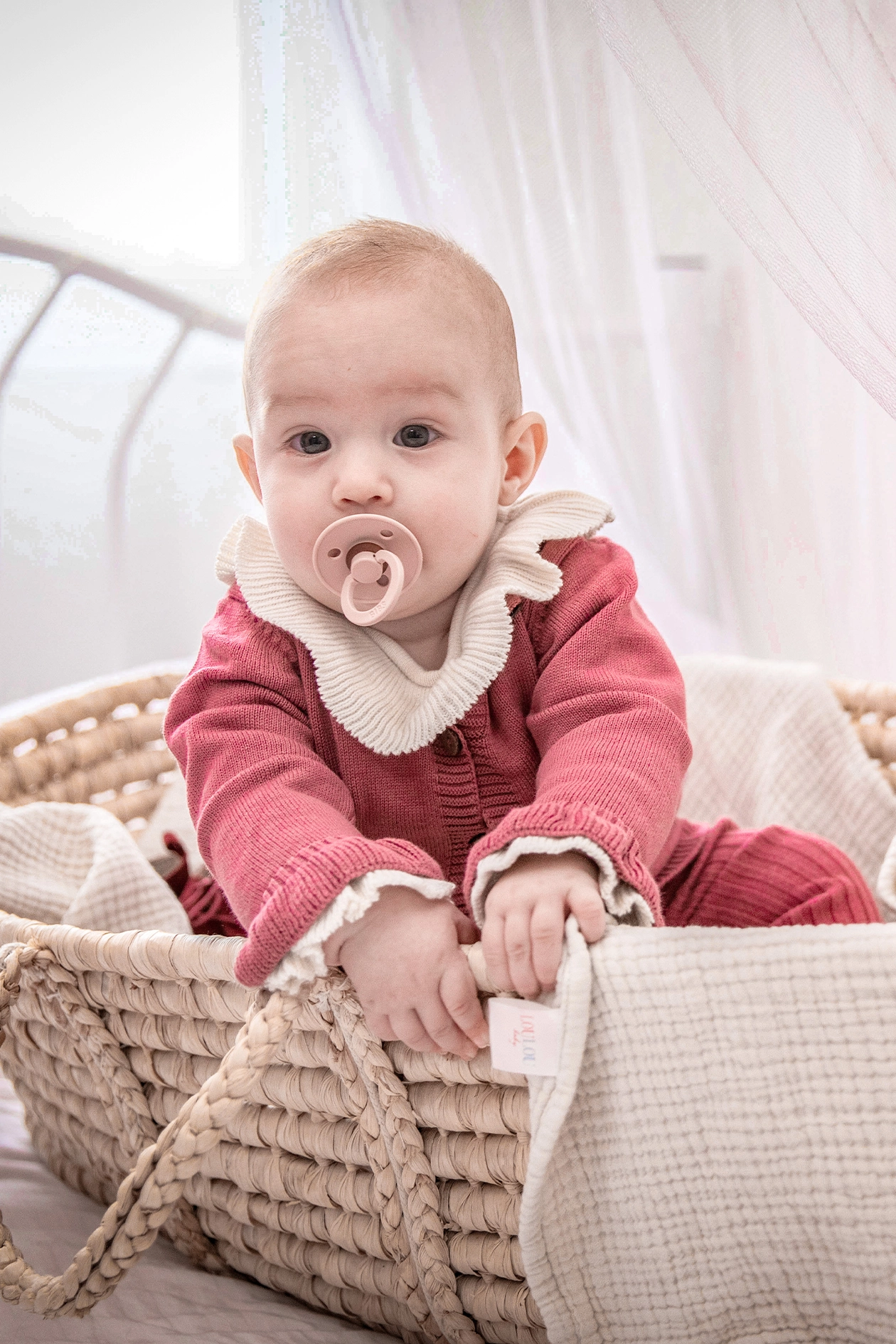 Denna mjuka muslinfilt är perfekt för din lilla älsklings komfort. Tillverkad av ett lätt och luftigt tyg ger den en mysig och skonsam känsla för bebisar. Perfekt för invigning, gos eller som barnvagnsskydd – denna mångsidiga filt är ett oumbärligt tillskott i varje barnrum. Den mjuka texturen och den enkla designen gör den till en tidlös del av din bebis basgarderob.
