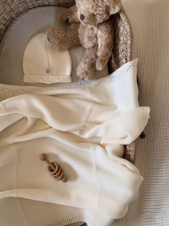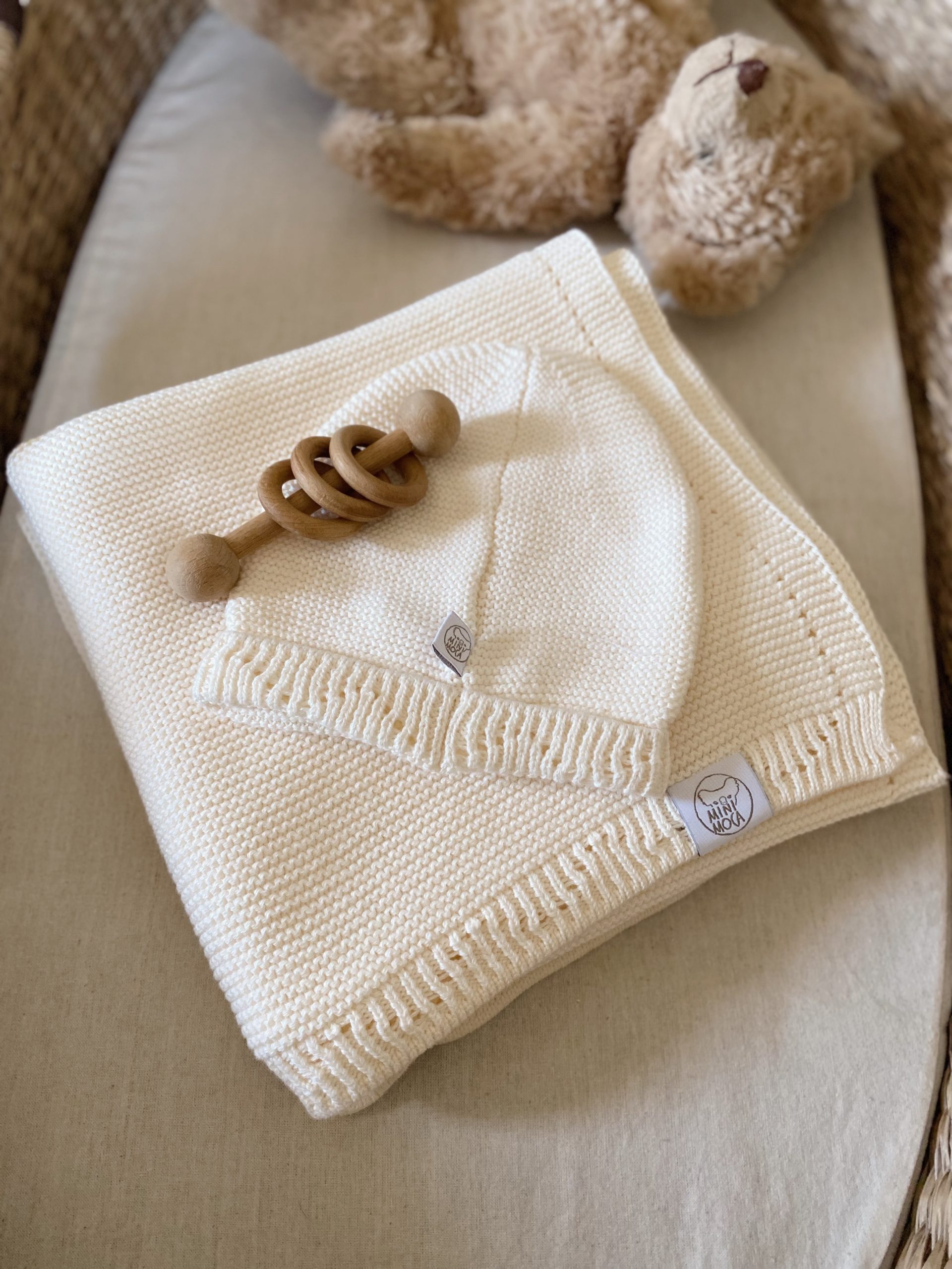 Ge ditt barn en trygg och varm start i livet med vårt MiniLuna-set. Den mjuka filten och den stickade mössan i ekologisk bomull omfamnar ditt barn med värme och omtanke – en naturlig gåva från hjärta till hjärta.