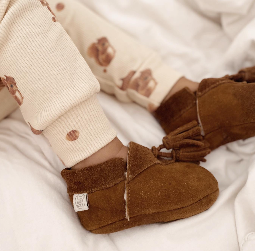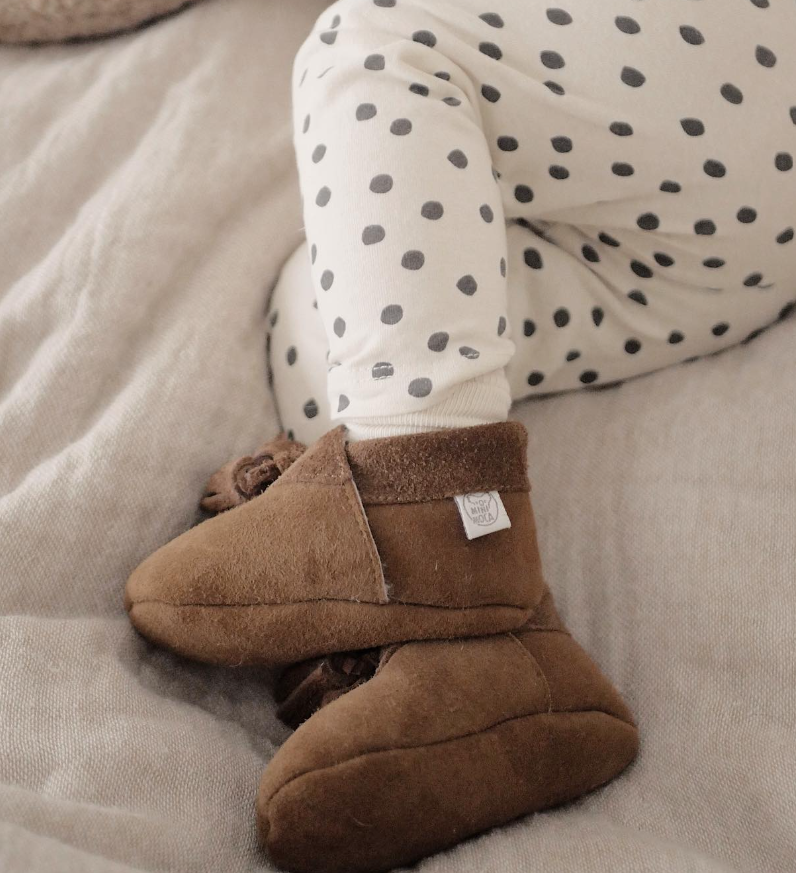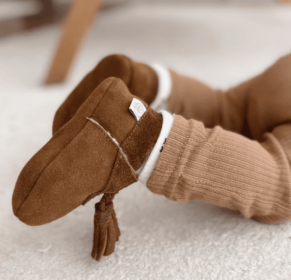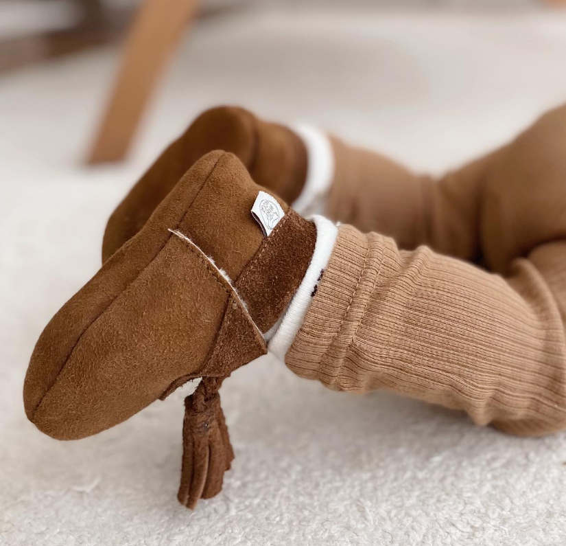 Varma och glada steg! Håll din bebis fötter varma och mysiga med dessa mjuka fårskinnskängor. Fodrade med fluffig ull och designade med en söt nedvikbar kant är de perfekta för kyliga dagar och små äventyr.